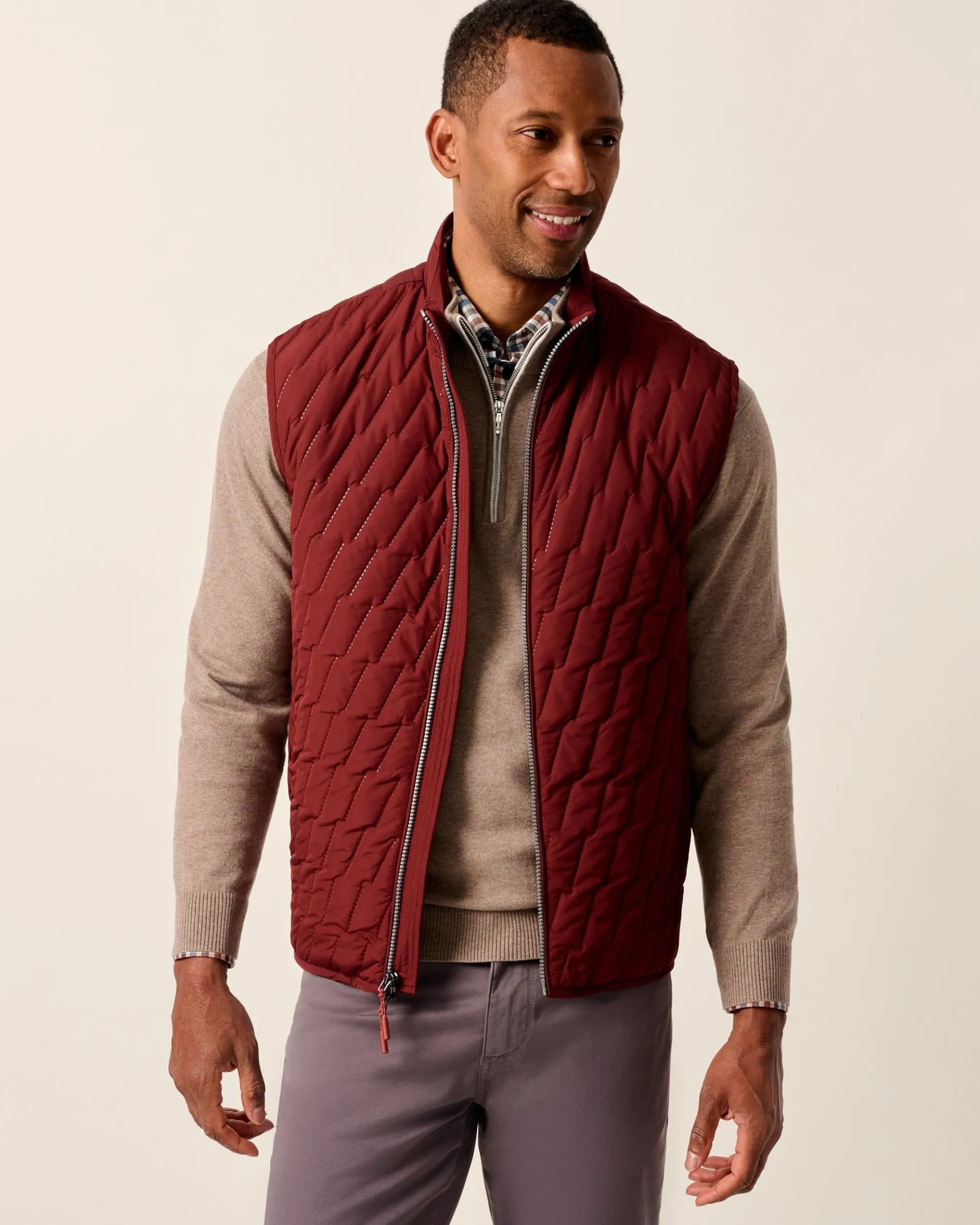 This British hunting-inspired, lightweight quilted puffer vest keeps a stiff upper lip and a refined, modern pattern. Always a reliable layer for cool fall mornings and a must-have while traveling near and far, you may end up needing it in than one color.