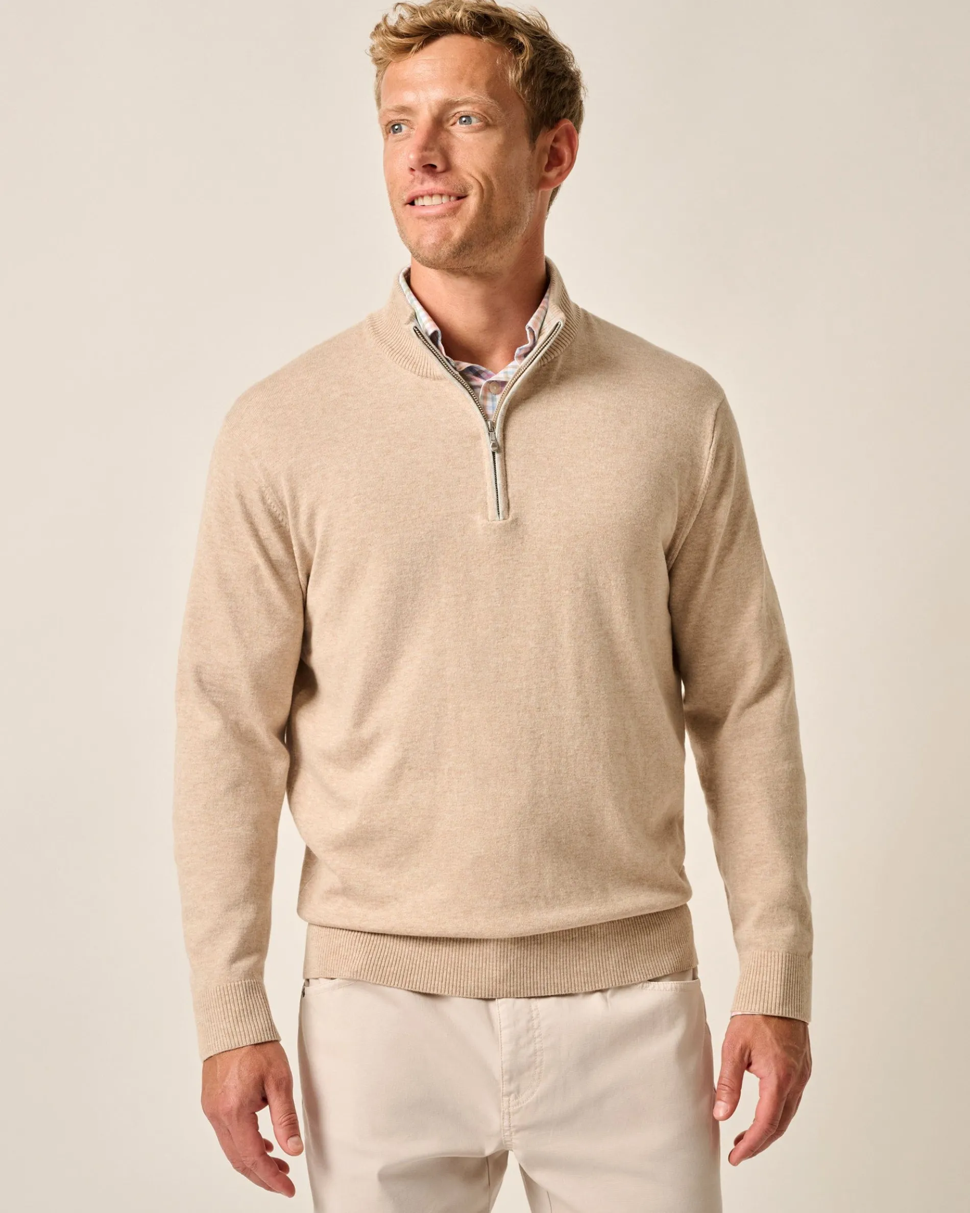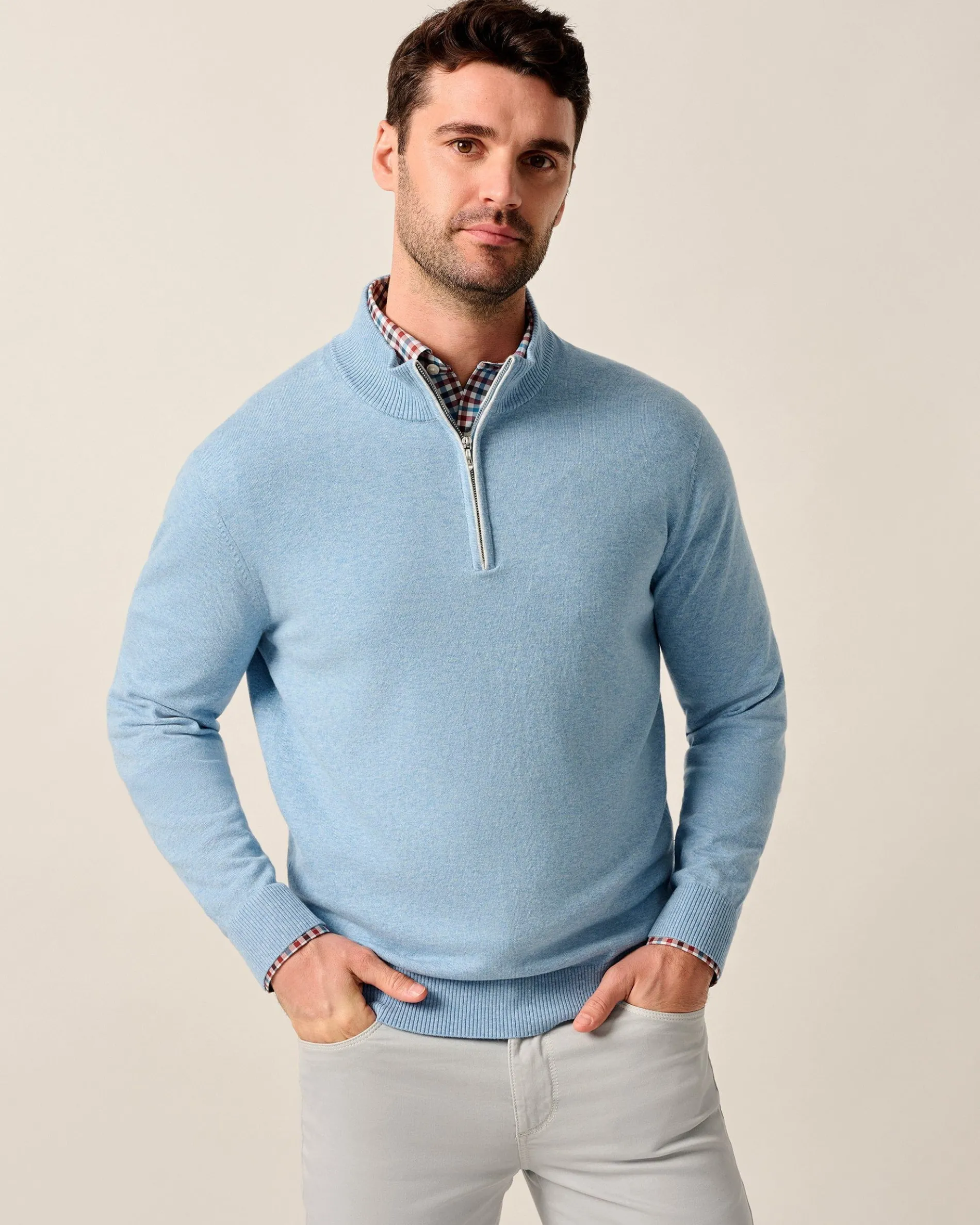 Plaited knits feature a special kind of weave that holds the shape of a garment over years of wearing and washing making it ideal for a guy with a good looking, no fuss wardrobe. This pullover is made with a cotton-heavy blend that is lightweight enough to wear year-round thanks to a little lightweight nylon and silk.