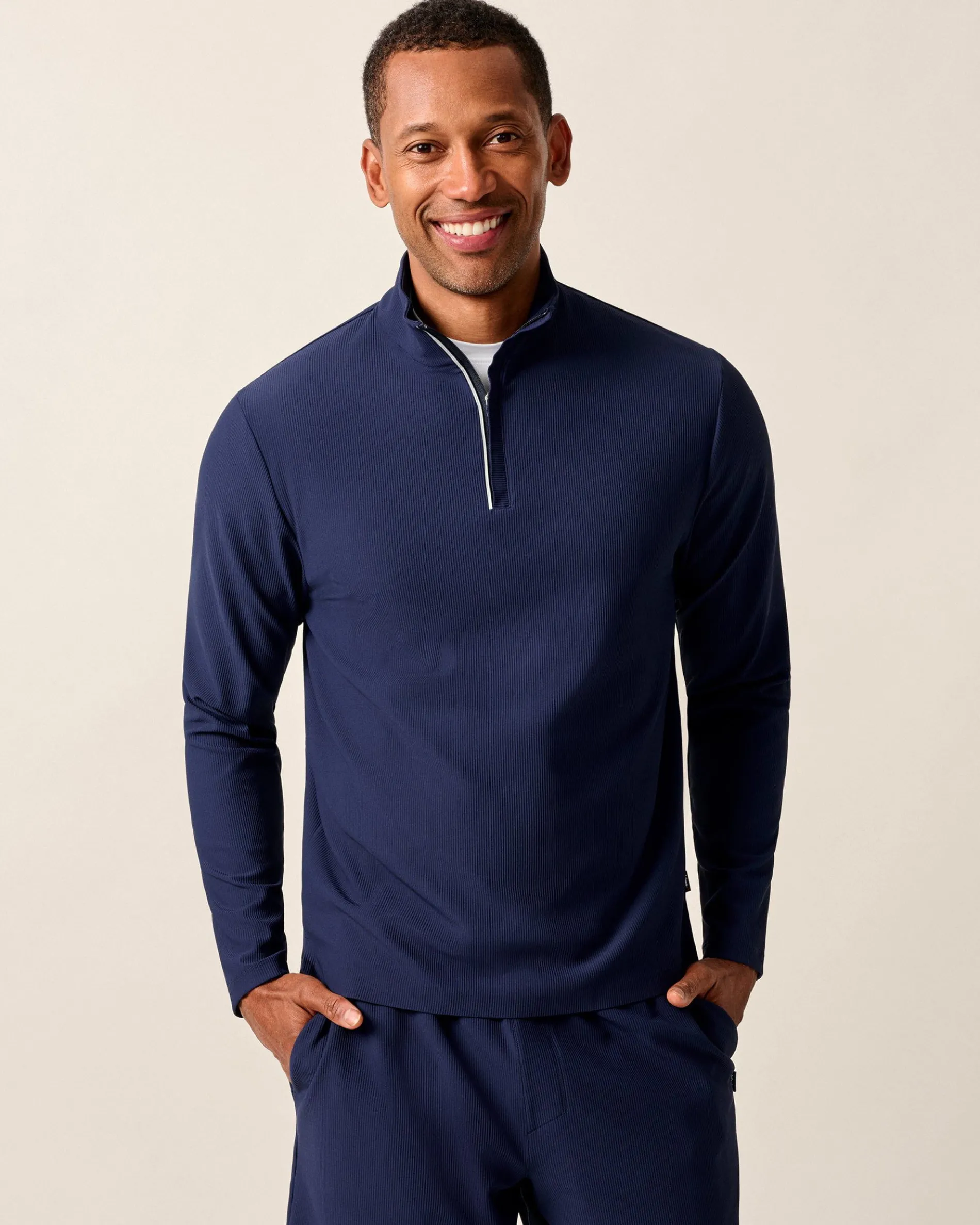 - Stretch rib knit quarter zip