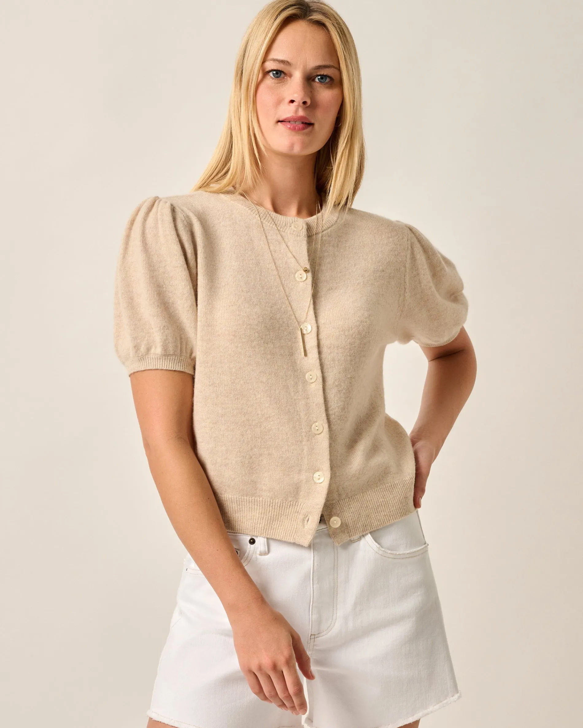 An elegant piece that can be worn as a layer or take center stage, the Lizzie features puffed sleeves for touch of mid-century fashion and finished with a grosgrain detail in the placket because we love the small details that make a huge difference.