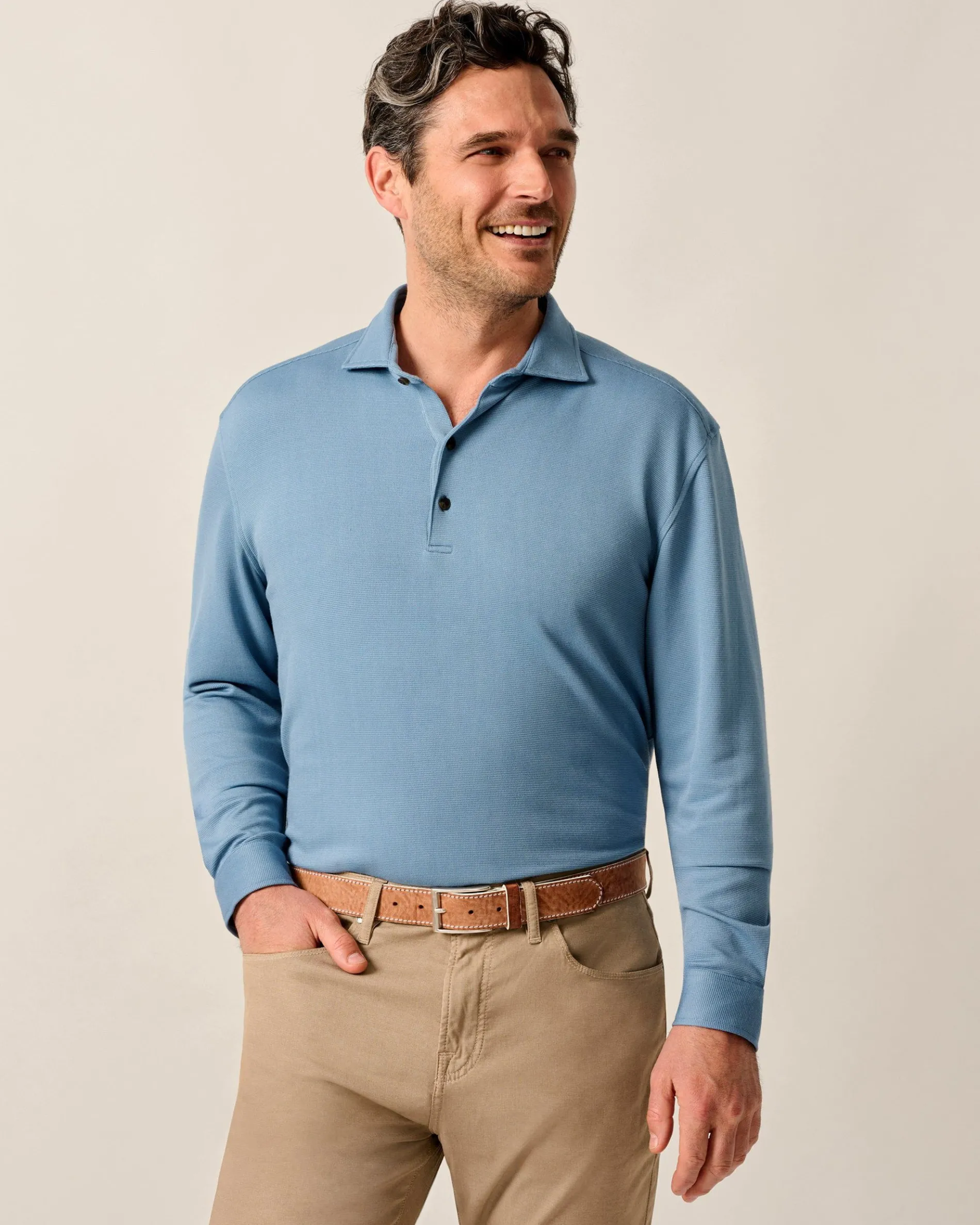 Our Top Shelf collection features our most elevated pieces with an emphasis on ultra-premium fabrics and next-level details. The Highburry polo is what we call luxe performance. It’s made with a robust fabric that has a bit of stretch and breathes well and finished with classic sartorial details like a cutaway collar, buttoned cuffs, and soft-touch horn buttons.