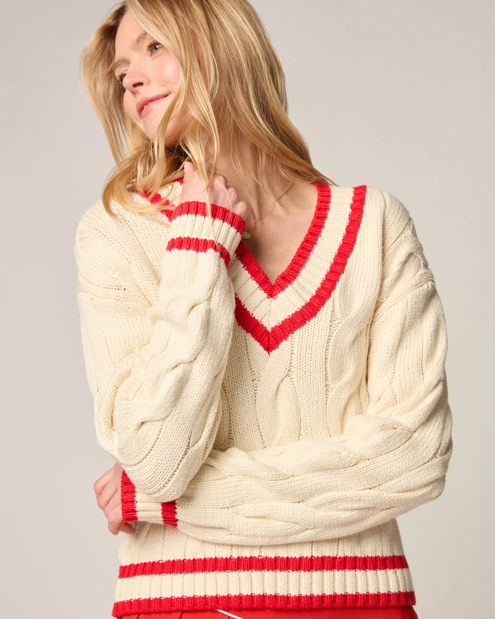 When in doubt, wear the perfect Varsity Sweater. Woven in versatile cotton with classic stripes and chunky cables, you don’t even have to be athletic to pull off style—throw it on with jeans, cargo pants or a skort and go.