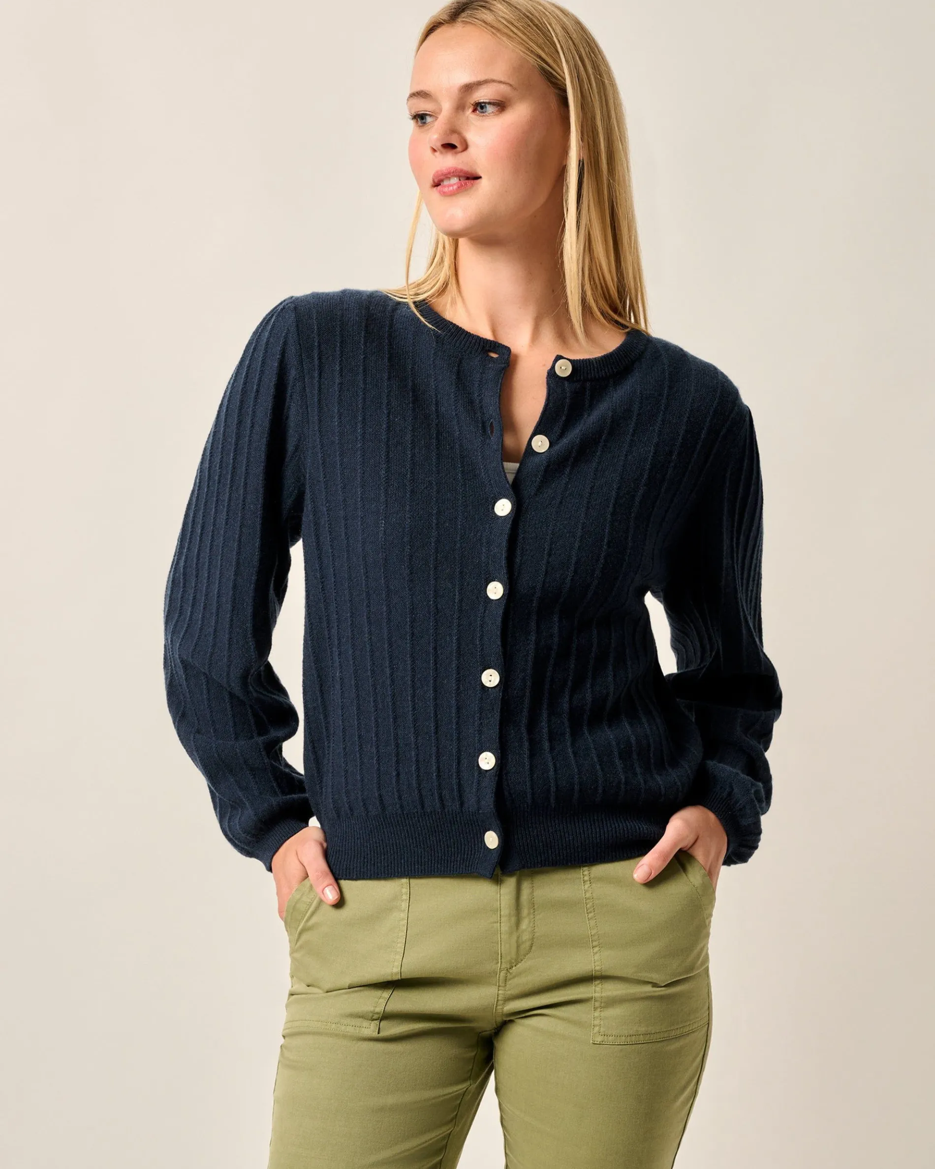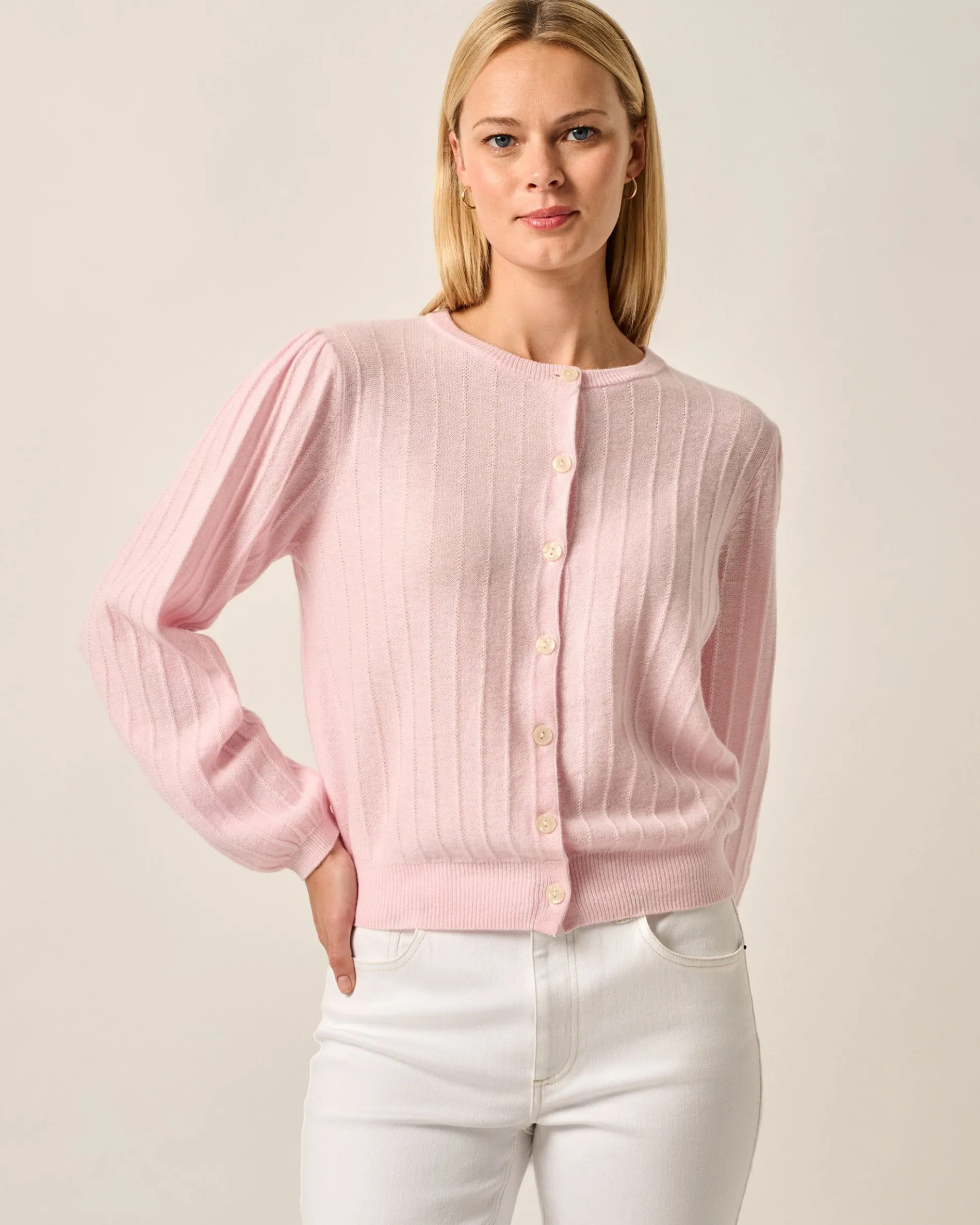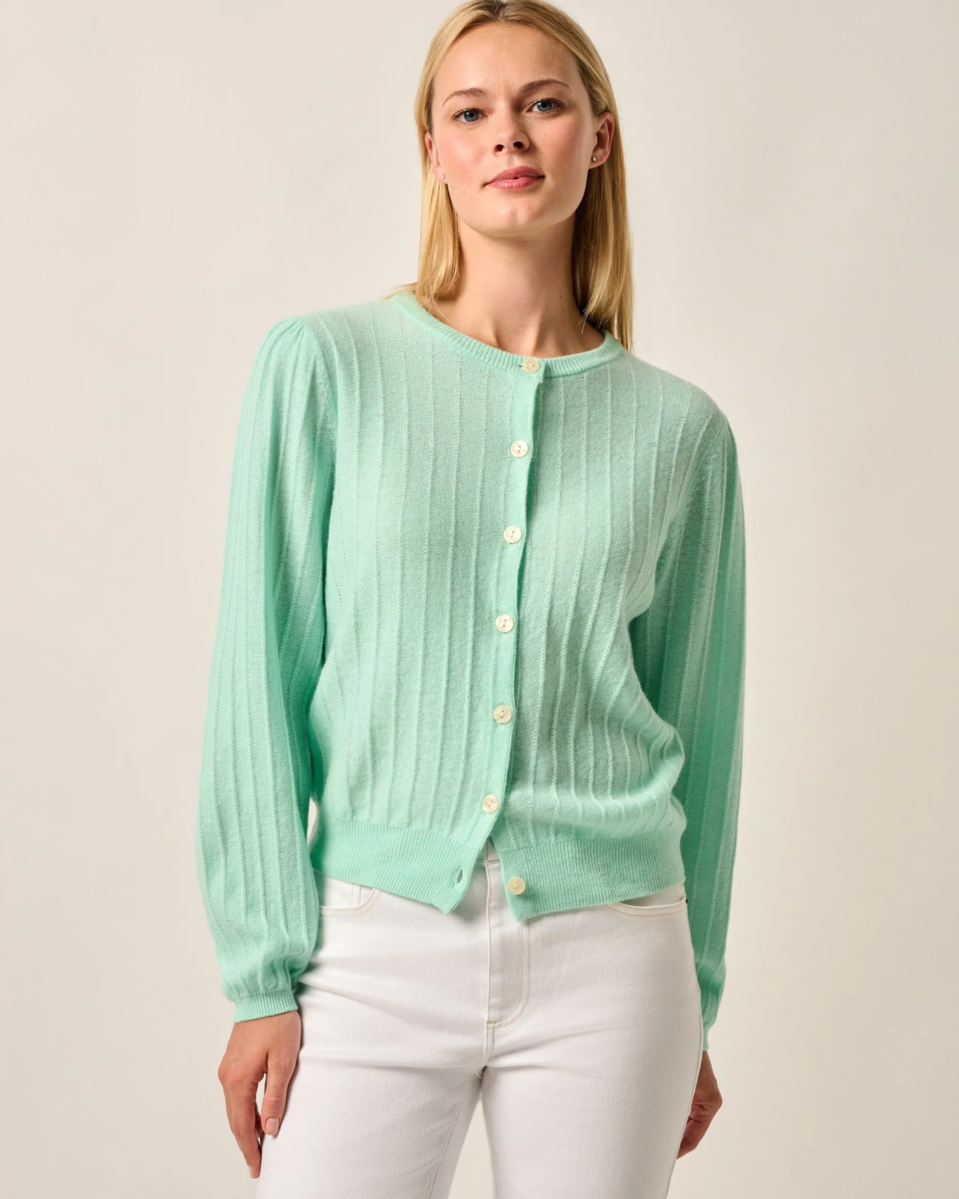Wrap yourself in luxury with the Alma Cashmere Blend Cardigan. Made with a fine gauge for a soft, comfortable fit, and featuring a delicate pointelle ladder stitch design. Made from a wool cashmere blend, this cardigan is the perfect balance of comfort and style.