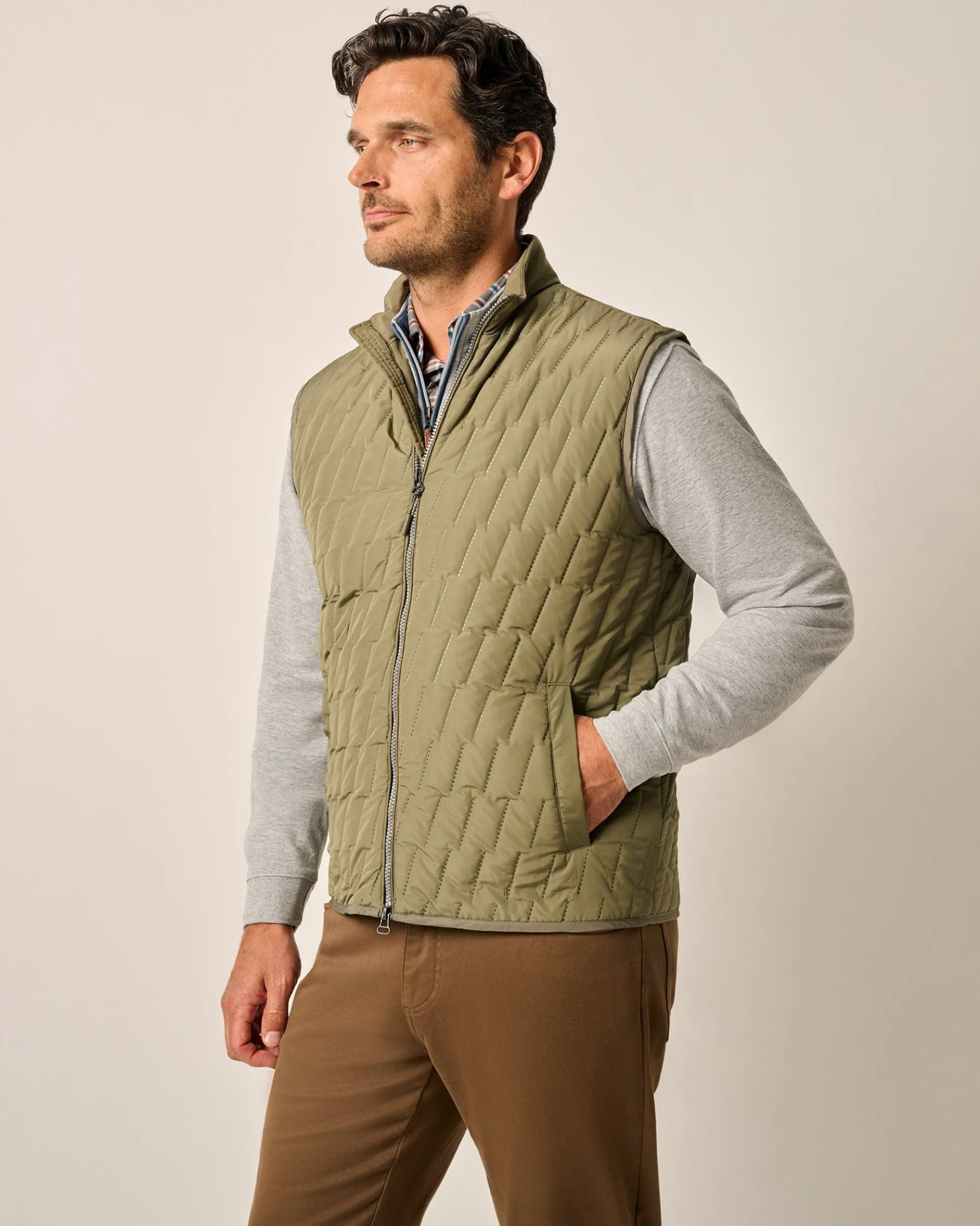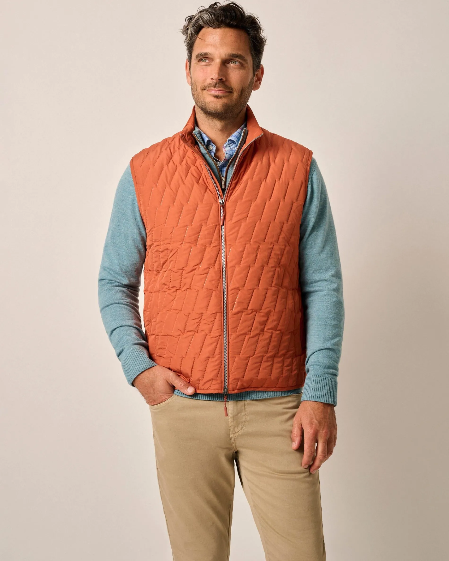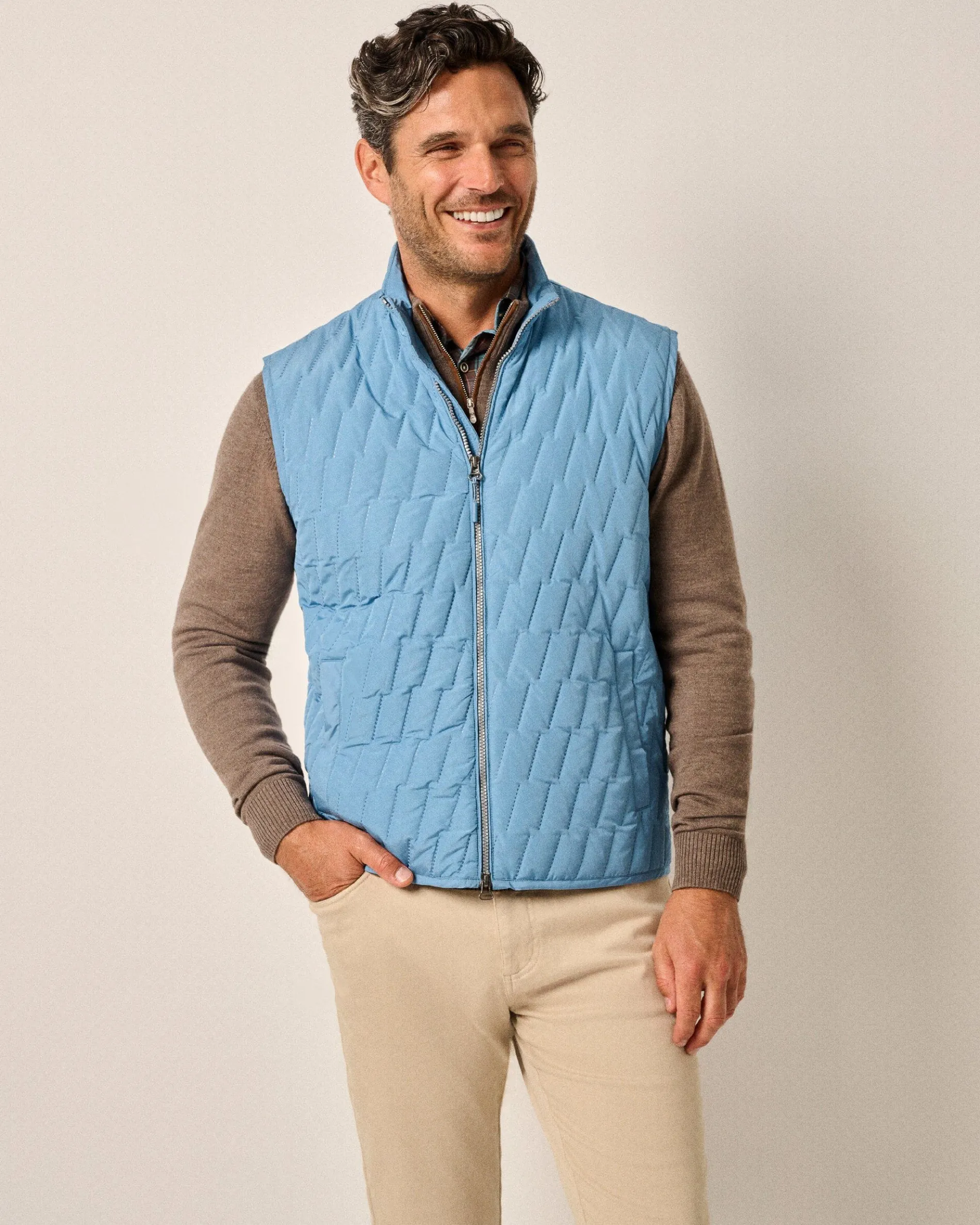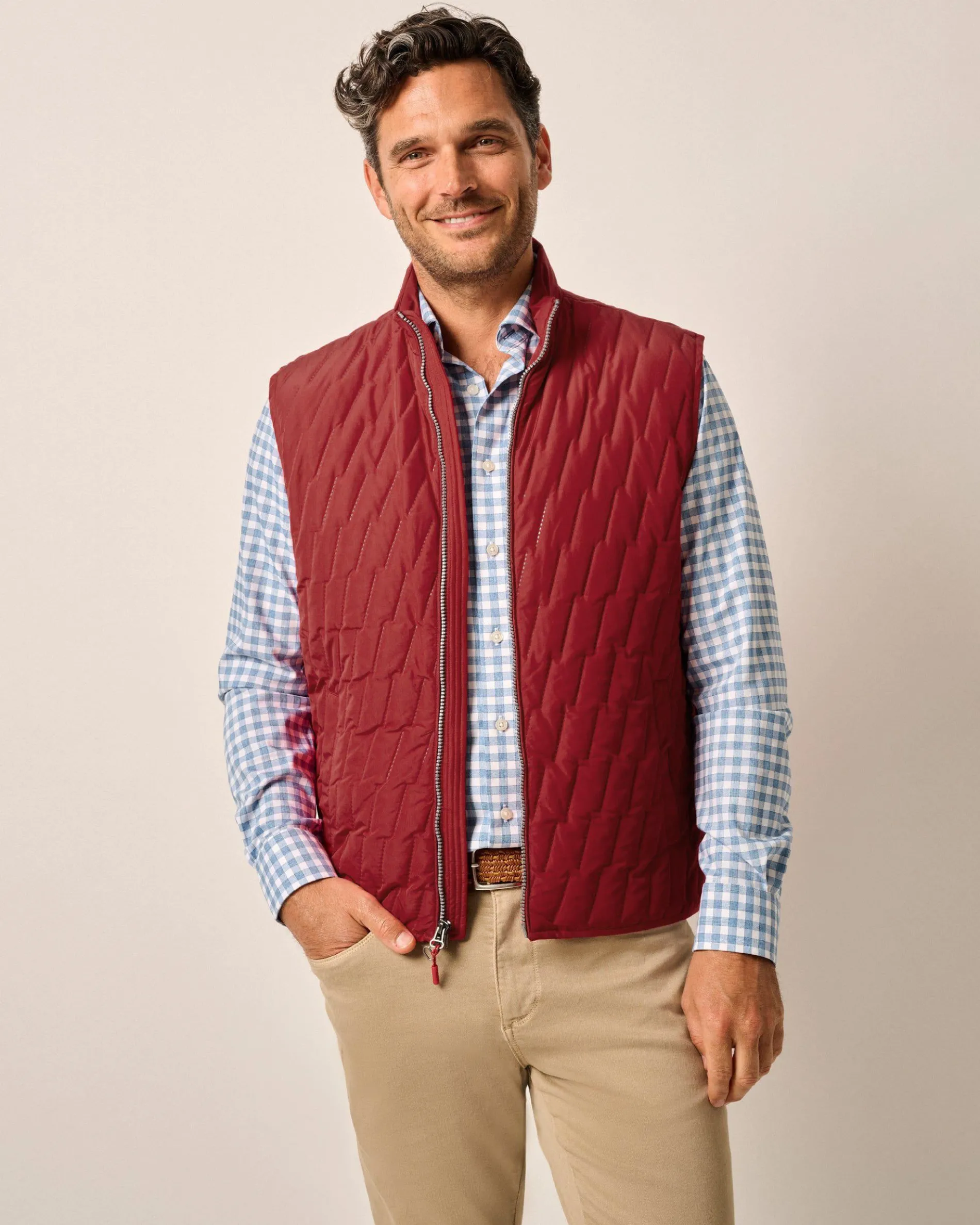 This British hunting-inspired, lightweight quilted puffer vest keeps a stiff upper lip and a refined, modern pattern. Always a reliable layer for cool fall mornings and a must-have while traveling near and far, you may end up needing it in than one color.