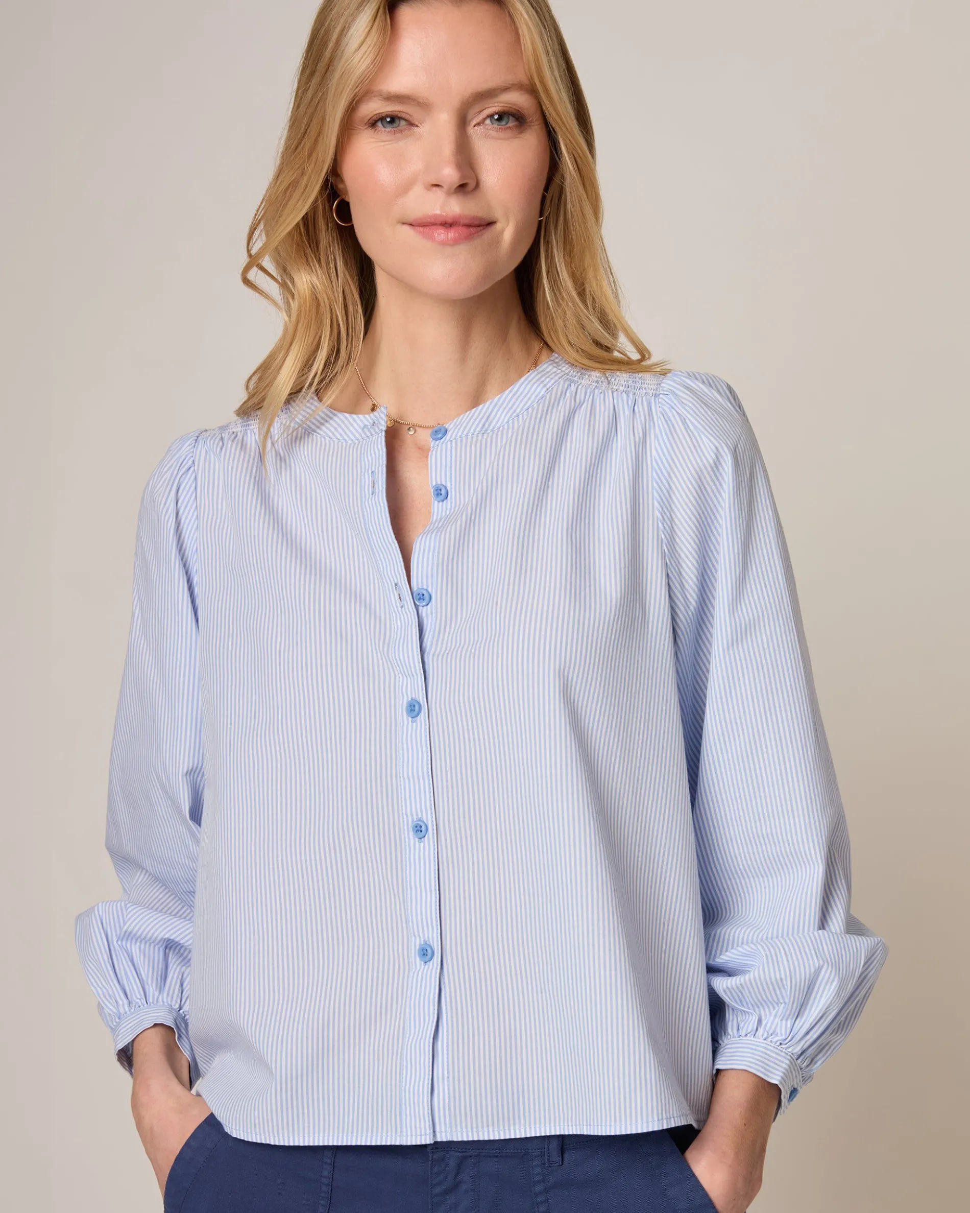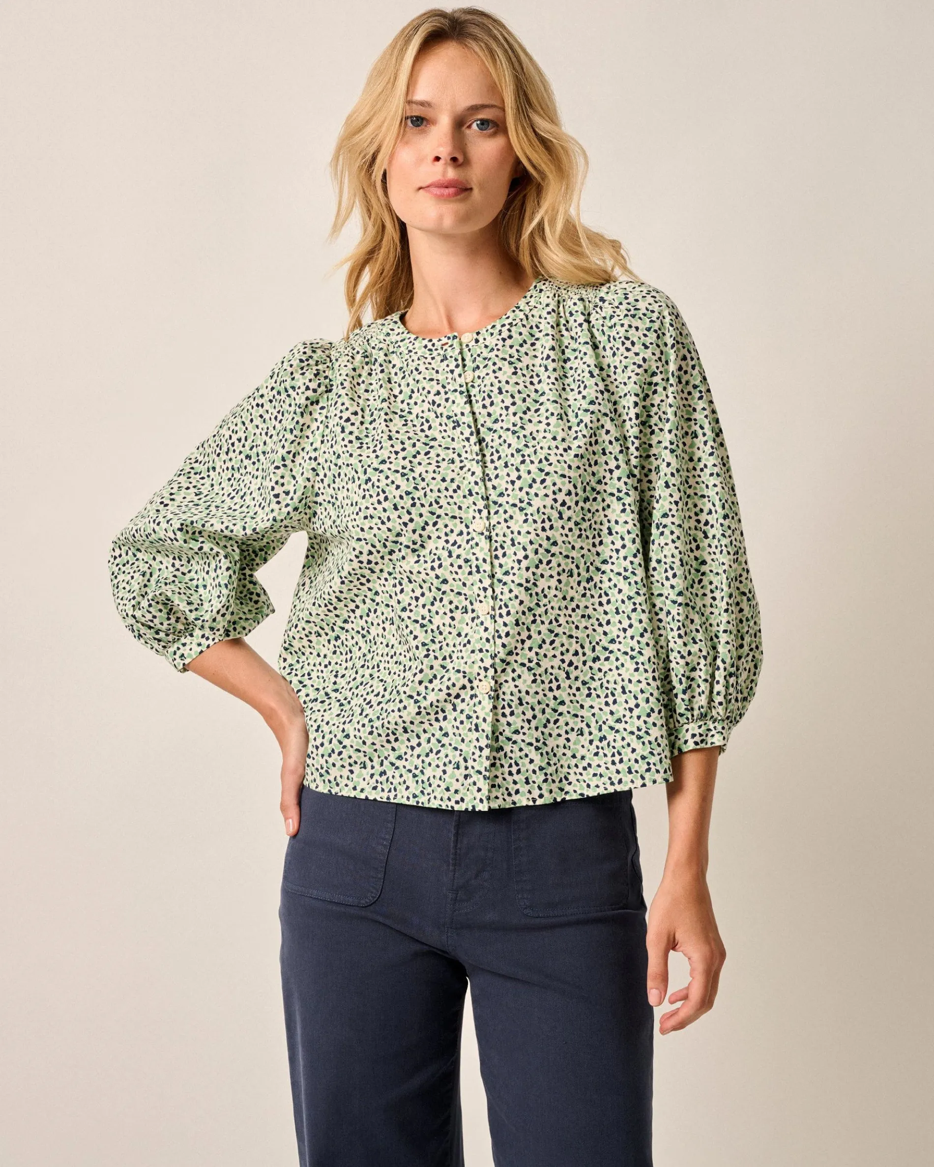 Soon to be your most-reached-for top with trousers or denim, this blouse is tailored for a swingy silhouette and finished with bracelet sleeves.