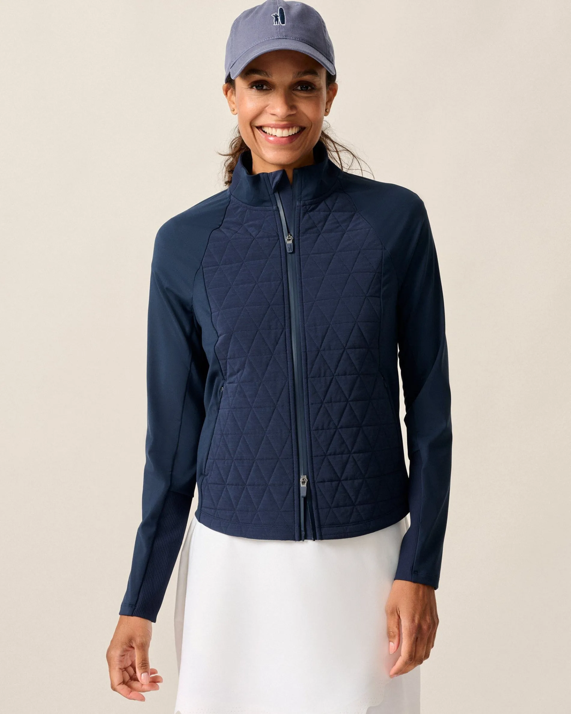 It’s chilly but you still need your athletic mobility. Enter: the Hannah Performance Jacket. Mixed media with a lightly quilted front for warmth, and accented with comfortable touches like a knit collar, this is a must-have in the transitional days of the season.