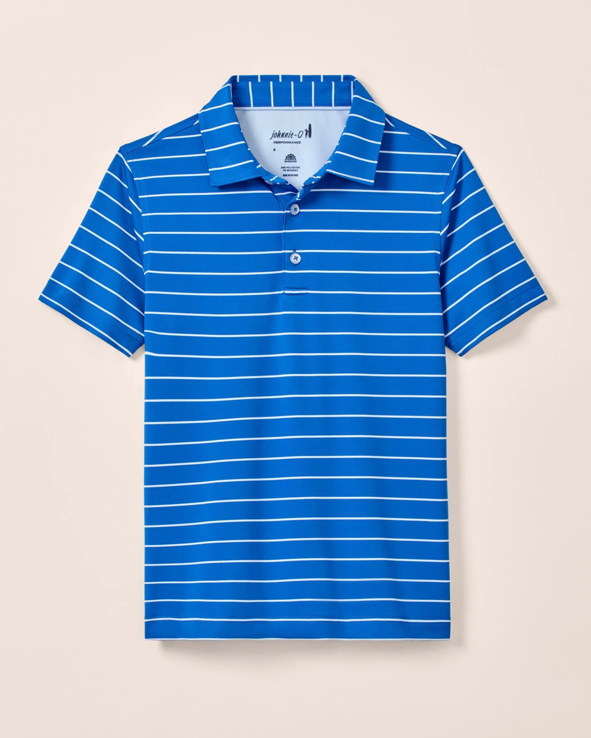 Made with lightweight performance jersey, this striped polo keeps the little guy cool and comfortable even as the temps tick up.
