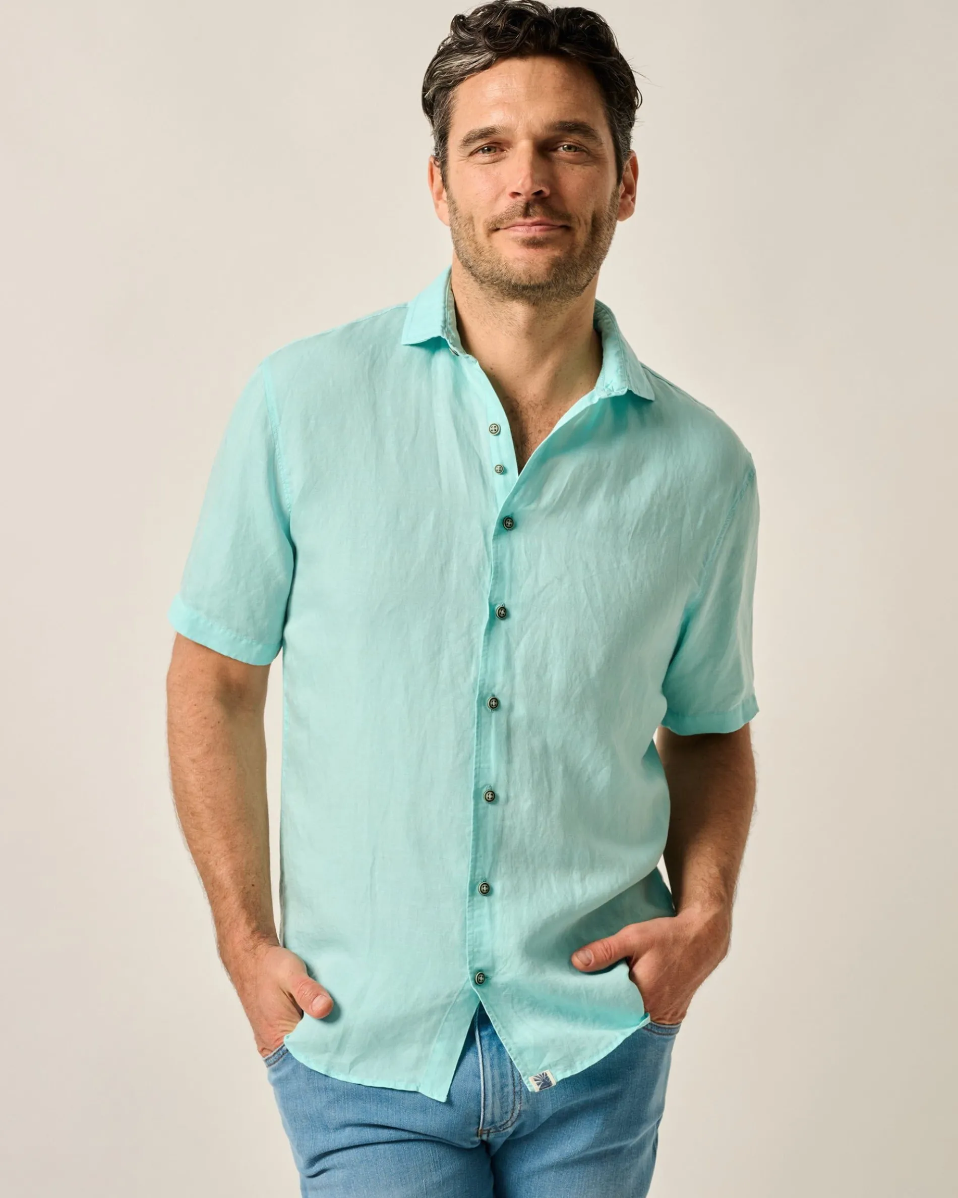 This knit button-down from our Hangin’ Out Collection—designed to look its best untucked—is crafted with a performance linen blend for extra breathability and softness (a major upgrade from the linen your dad used to wear). The garment dye on the fabric gives this shirt the look of a style you’ve had for years without having to break it in yourself. If you love linen but wanted a bit more comfort (and a lot less ironing) this is right down your alley.