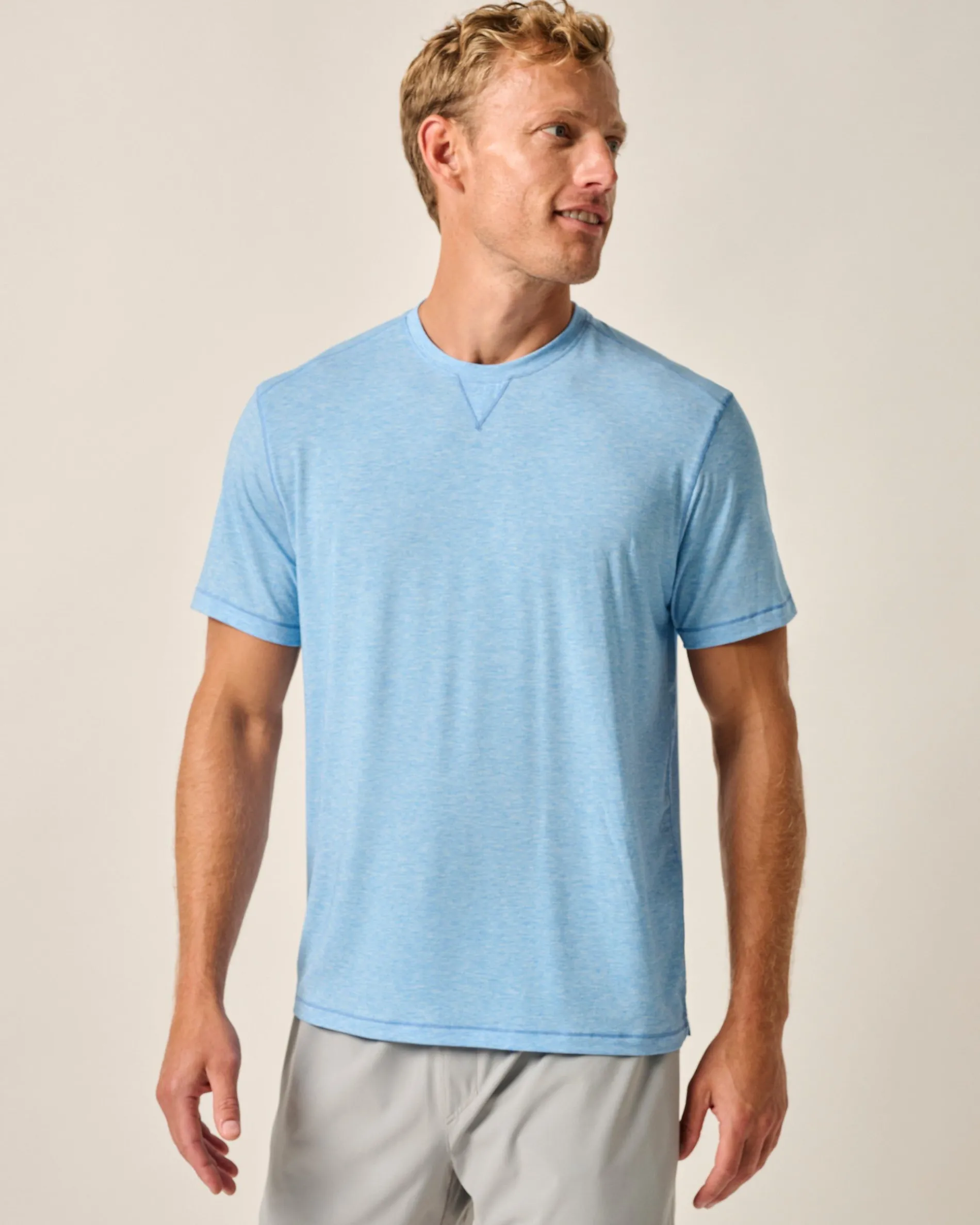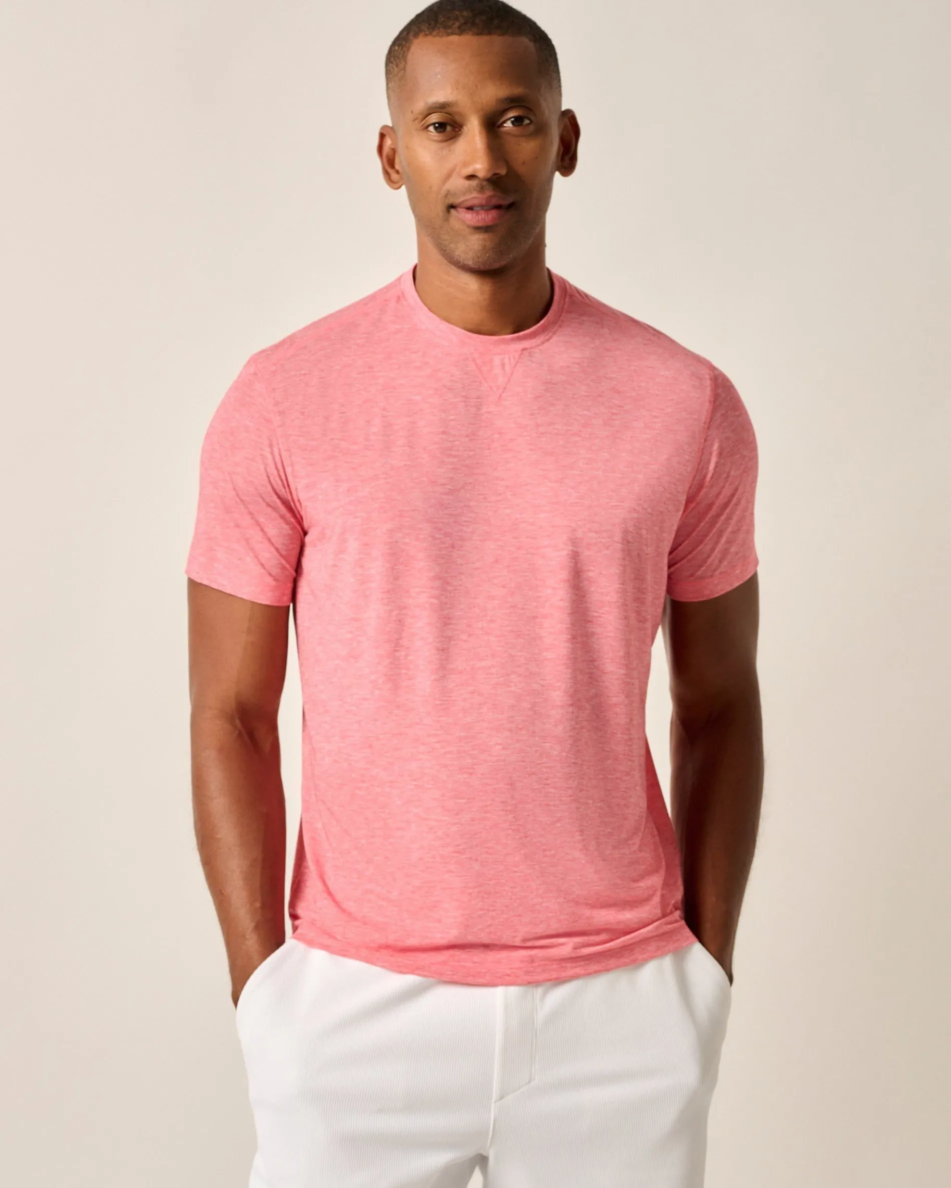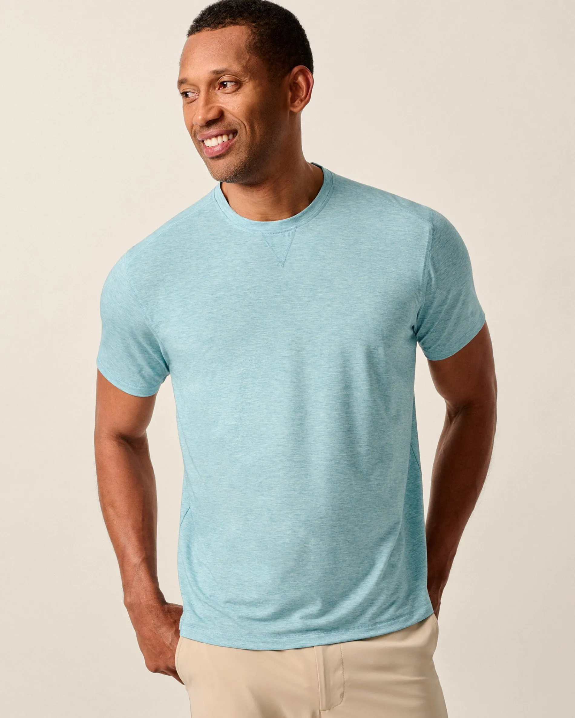 Our ideal active performance top is soft to the touch, lightweight, sun-blocking and moisture wicking. Designed with hybrid style in mind, this tee offers the technical details you want for days on the course or hitting the gym, and it also looks classic enough for everyday wear with joggers or jeans.
